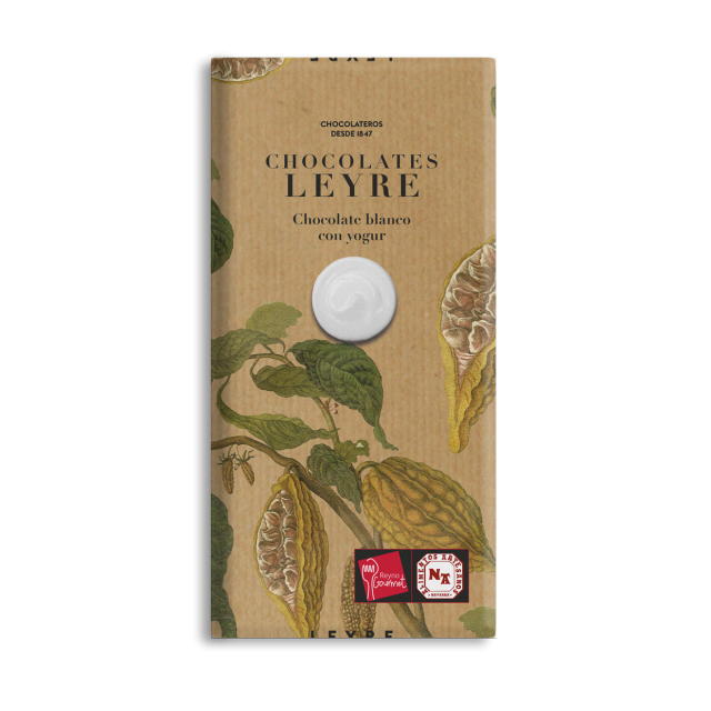 Ingredientes: Azúcar, manteca de cacao, leche entera en polvo, emulgente (lecitina de soja), aromas (yogur y vainillina). Puede contener trazas de frutos secos.