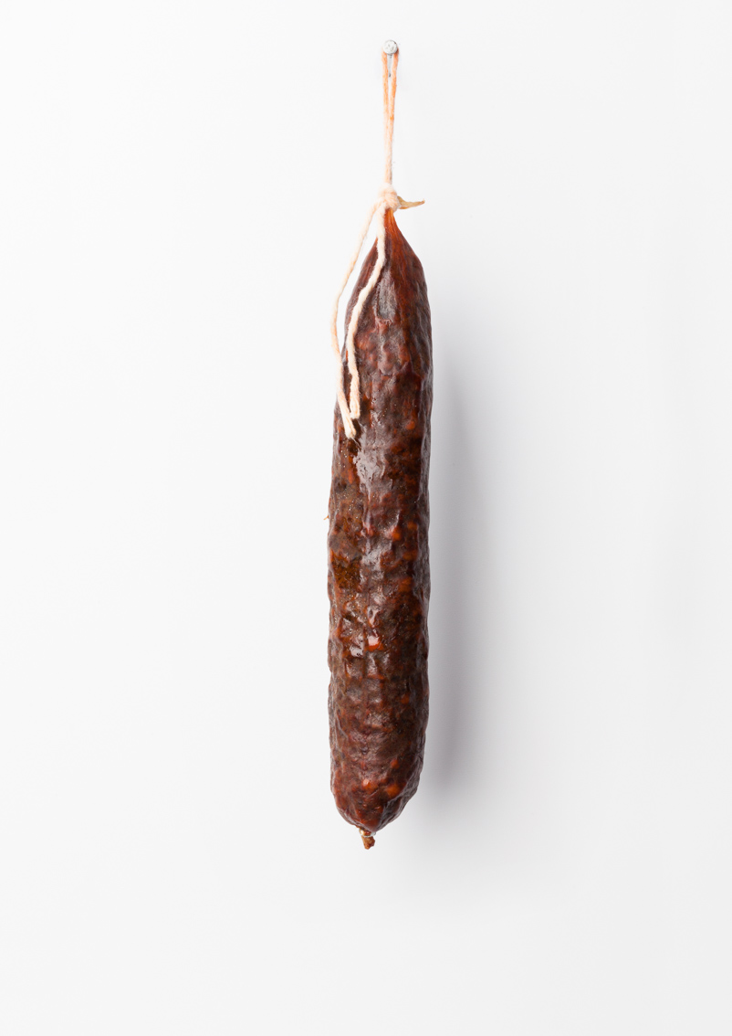 La principal característica de este embutido es que utilizamos carne exclusivamente de animales salvajes de caza(embutidos en tripa de cerdo), algo único hoy en día ya que comienzan a proliferar las granjas de jabalíes y ciervos.