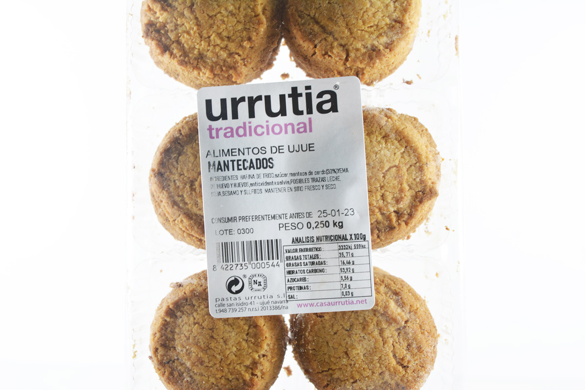Ingredientes: Harina de trigo, azúcar, manteca de cerdo (30%), yema de huevo y antioxidantes.